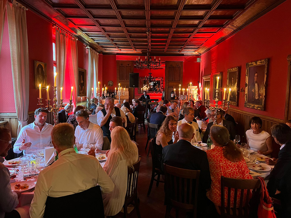 Clubabend mit Damen im Schlosshotel Kommende Ramersdorf in Bonn-Beuel. Nach einem Champagnerempfang auf der Außenterrasse des Schlosses folgte ein Klavierkonzert der ukrainischen Konzertpianistin Violina Petryschenko. Nach dem anschließenden Dinner, das der Gastronom Salvatore Luca mit musikalischer Begleitung servierte, ging es zum Tanz.