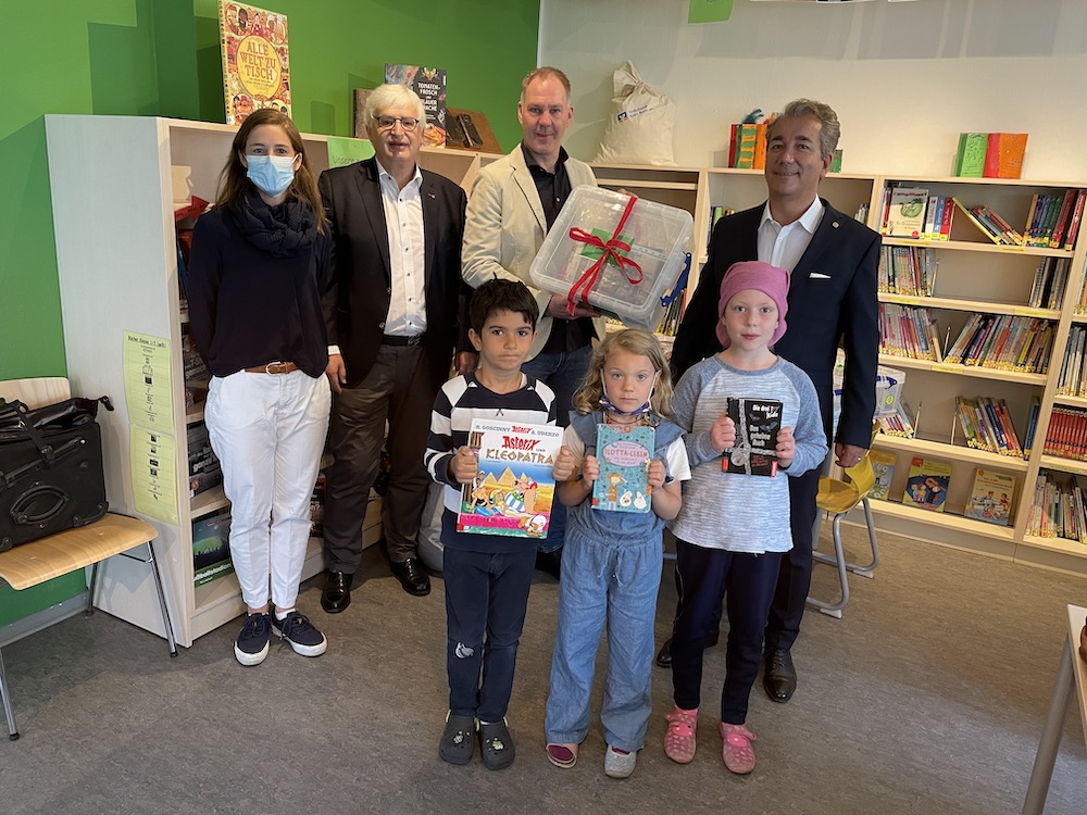 Offizielle Spendenübergabe an die Gemeinschaftsgrundschule Diesterwegstrasse in Köln-Brück durch Präsident Scheen anlässlich der Leseförderung unseres Clubs.
