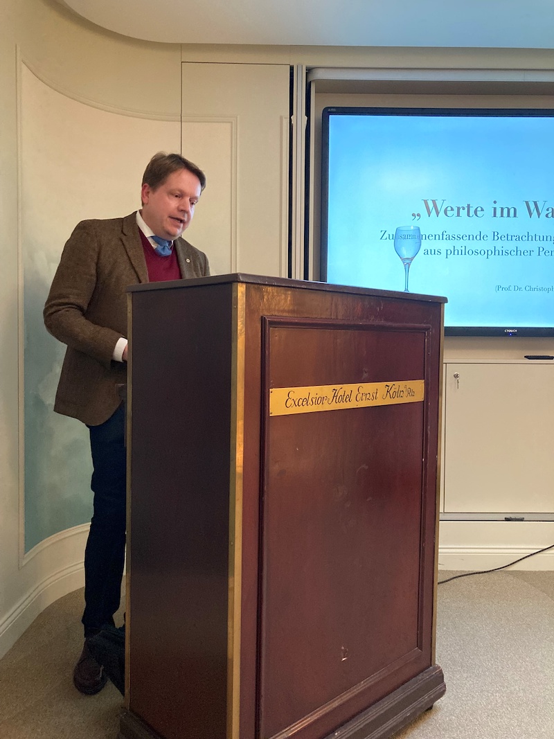 Endlich konnte trotz weiterhin bestehender Pandemie wieder eine Präsenzveranstaltung stattfinden, bei der unser Lionsfreund Prof. Dr. Christoph Helmig, Lehrstuhl für Philosophie mit dem Schwerpunkt Antike Philosophie, Universität zu Köln, die zusammenfassende Betrachtung der siebenteiligen Vortragsreihe „Werte im Wandel“ vornahm. Mit diesem sehr breit gefächerten und hoch interessanten Vortrag wurde die Vortragsreihe abgeschlossen.